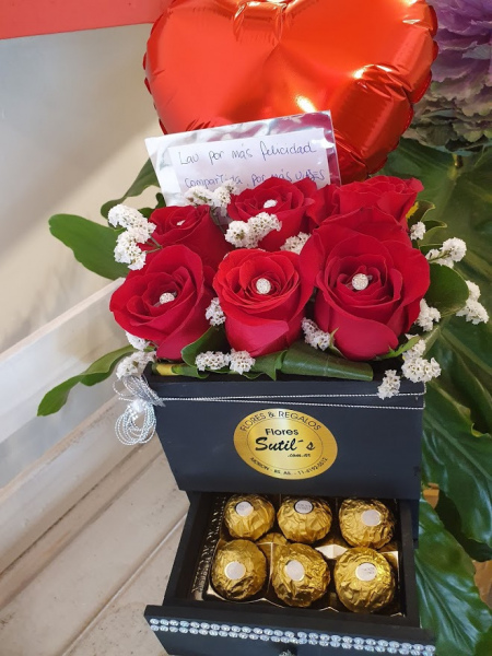 Box de rosas en caja especial. Incluye ferrero + 6 rosas.