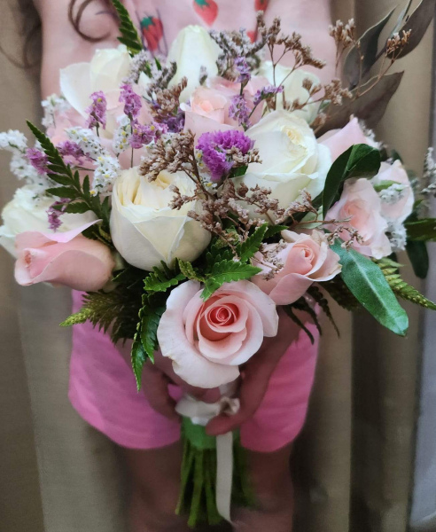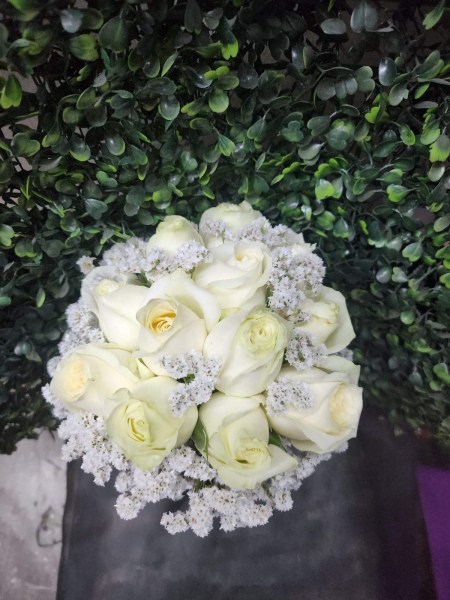 Ramo de novia redondo de rosas, el mismo esta compuesto por 12 rosas aprox . las cuanles pueden ser del color que elija el cliente, dependiendo del stock al momento de la compra.
