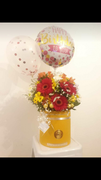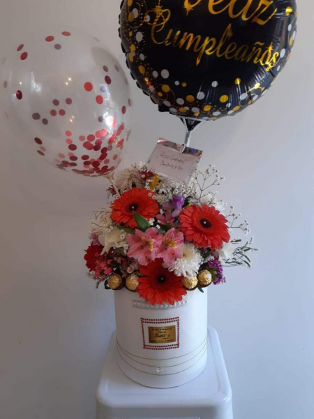 Arreglo de flores silvestres extra grande mas globos mas 4 ferrero
