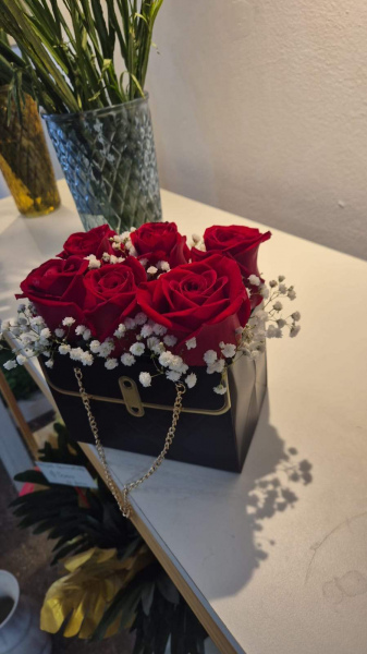box cadena con 6 rosas