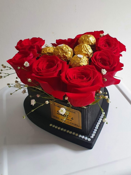 box corazon con rosas y ferrero.