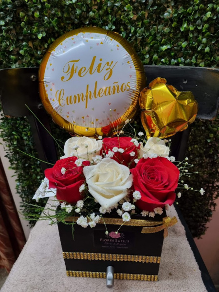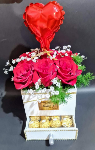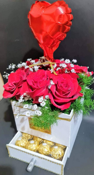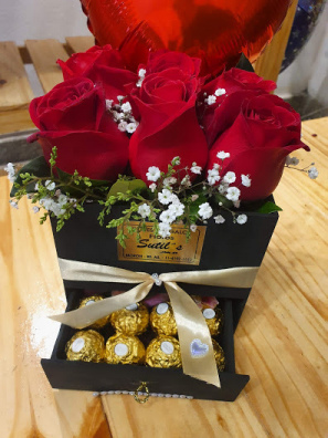 Box de rosas en caja especial. Incluye ferrero + 6 rosas.