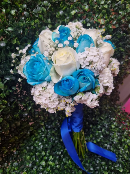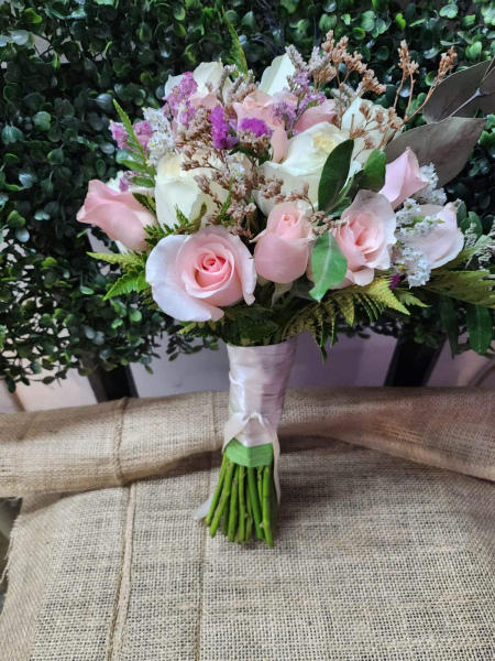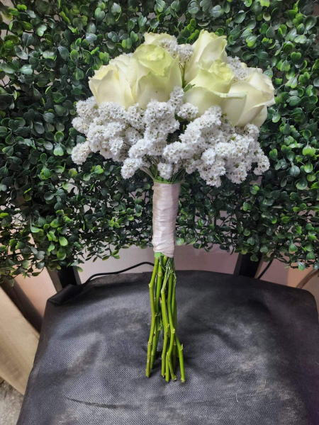 Ramo de novia redondo de rosas, el mismo esta compuesto por 12 rosas aprox . las cuanles pueden ser del color que elija el cliente, dependiendo del stock al momento de la compra.