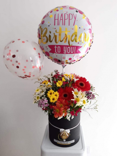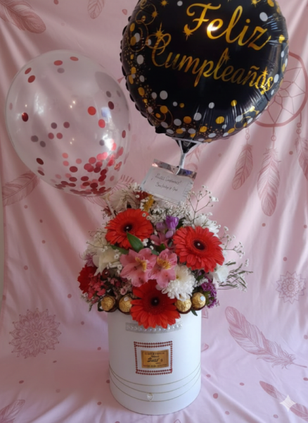 Arreglo de flores silvestres extra grande mas globos mas 4 ferrero