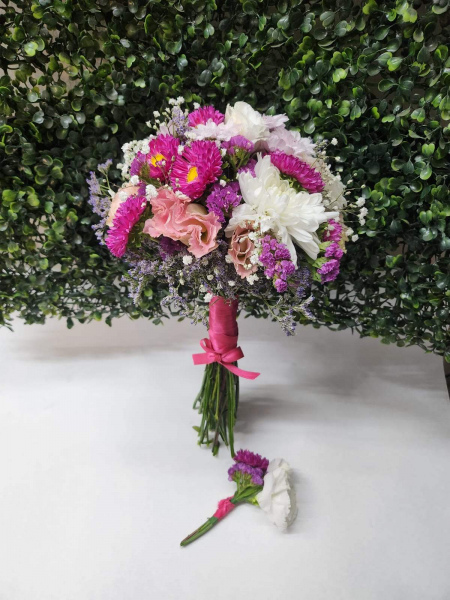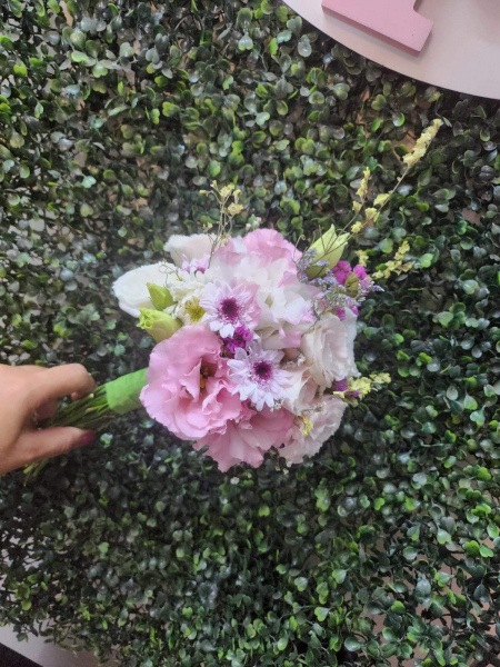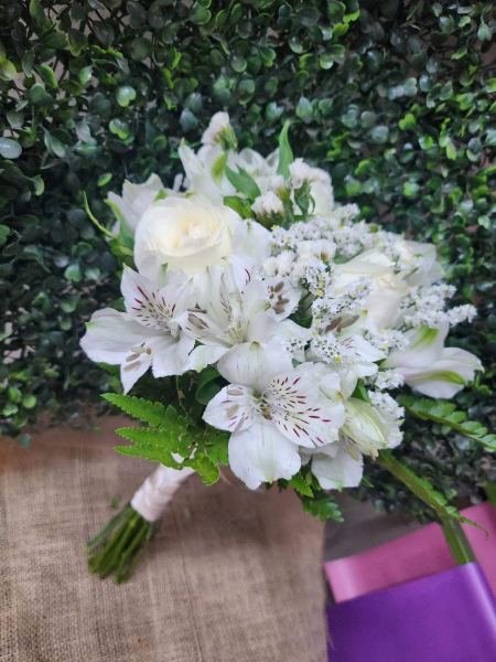 ramo de novia mediano boda o civil sencillo de flores silvestres como lisiantus , astromelias, margaritas o flores de estacion segun fecha.
