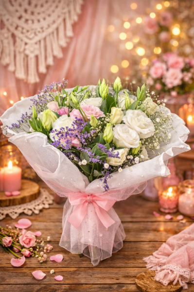 ramo de lisiantus o margaritas segun temporada y stock